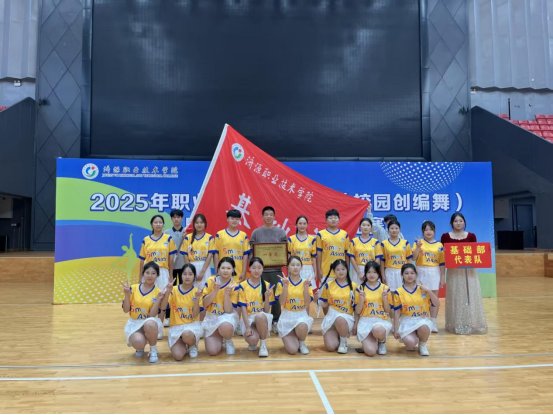 10 月 30 日,濟源職業(yè)技術學院 2025 年職業(yè)教育技能大賽校園創(chuàng)編舞暨大學生健身操舞比賽在高新校區(qū)大學生文體中心圓滿落幕?;A部參賽隊伍憑借出色表現,從眾多參賽隊伍中脫穎而出,斬獲健美操組一等獎。