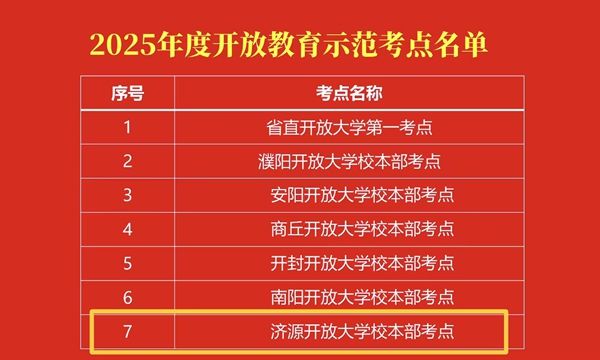 近日,河南開(kāi)放大學(xué)公布2025年開(kāi)放大學(xué)系統(tǒng)“示范考點(diǎn)”評(píng)選結(jié)果,濟(jì)源開(kāi)放大學(xué)榮獲“示范考點(diǎn)”稱號(hào)。